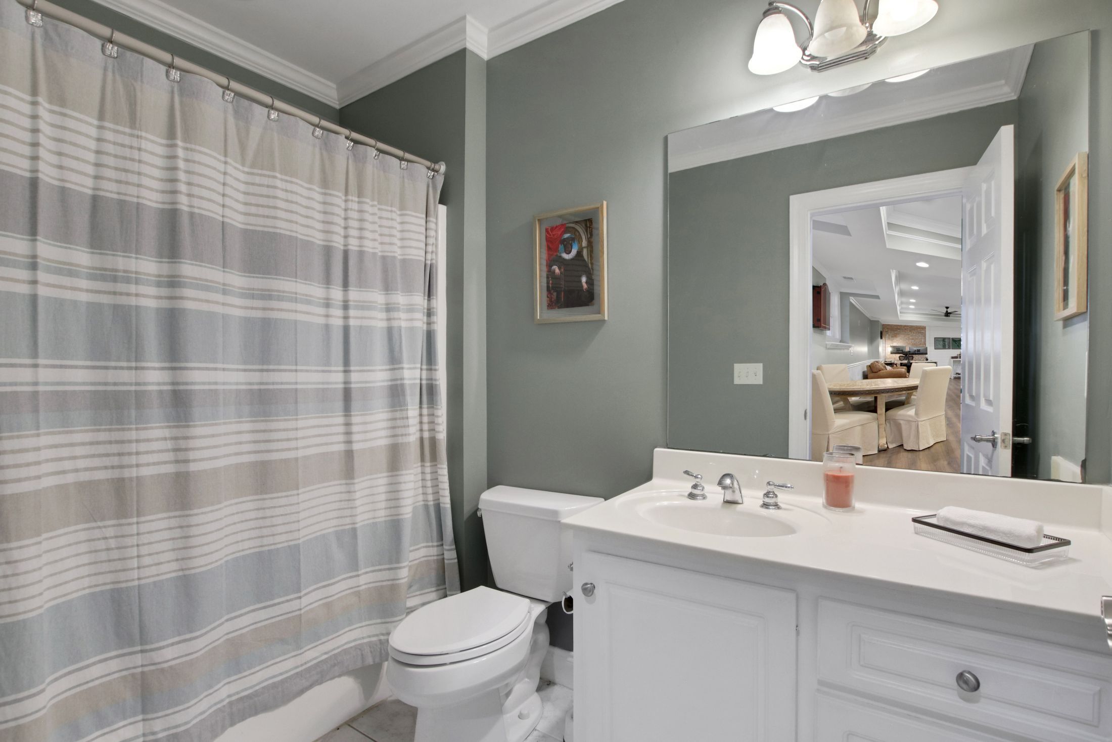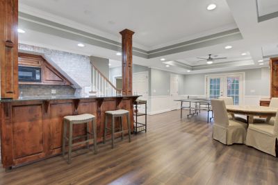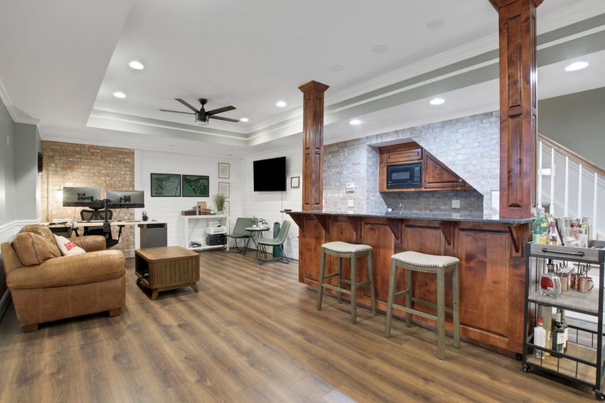 The finished terrace level is built for entertaining, complete with a custom bar, media and game areas, a guest bedroom, and a full bath.