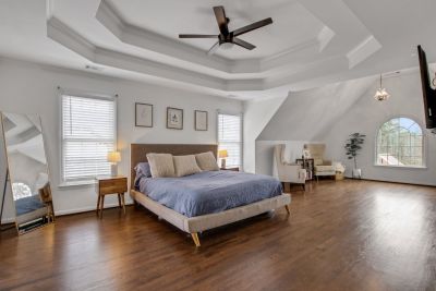 The owner's suite includes a versatile sitting room - perfect for a home office, fitness space, or quiet retreat - along with three generously sized secondary bedrooms, each with its own bath.