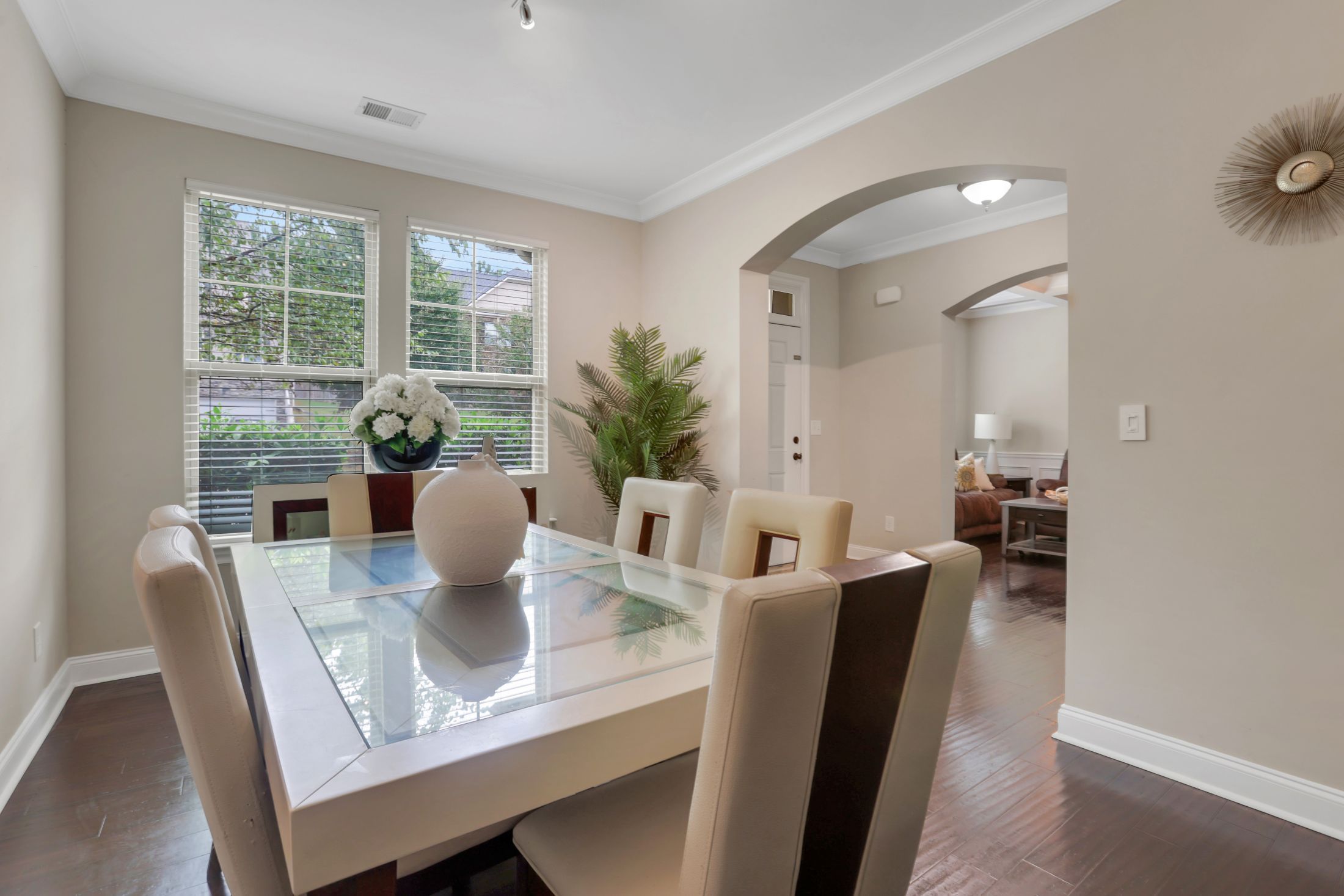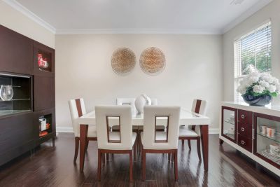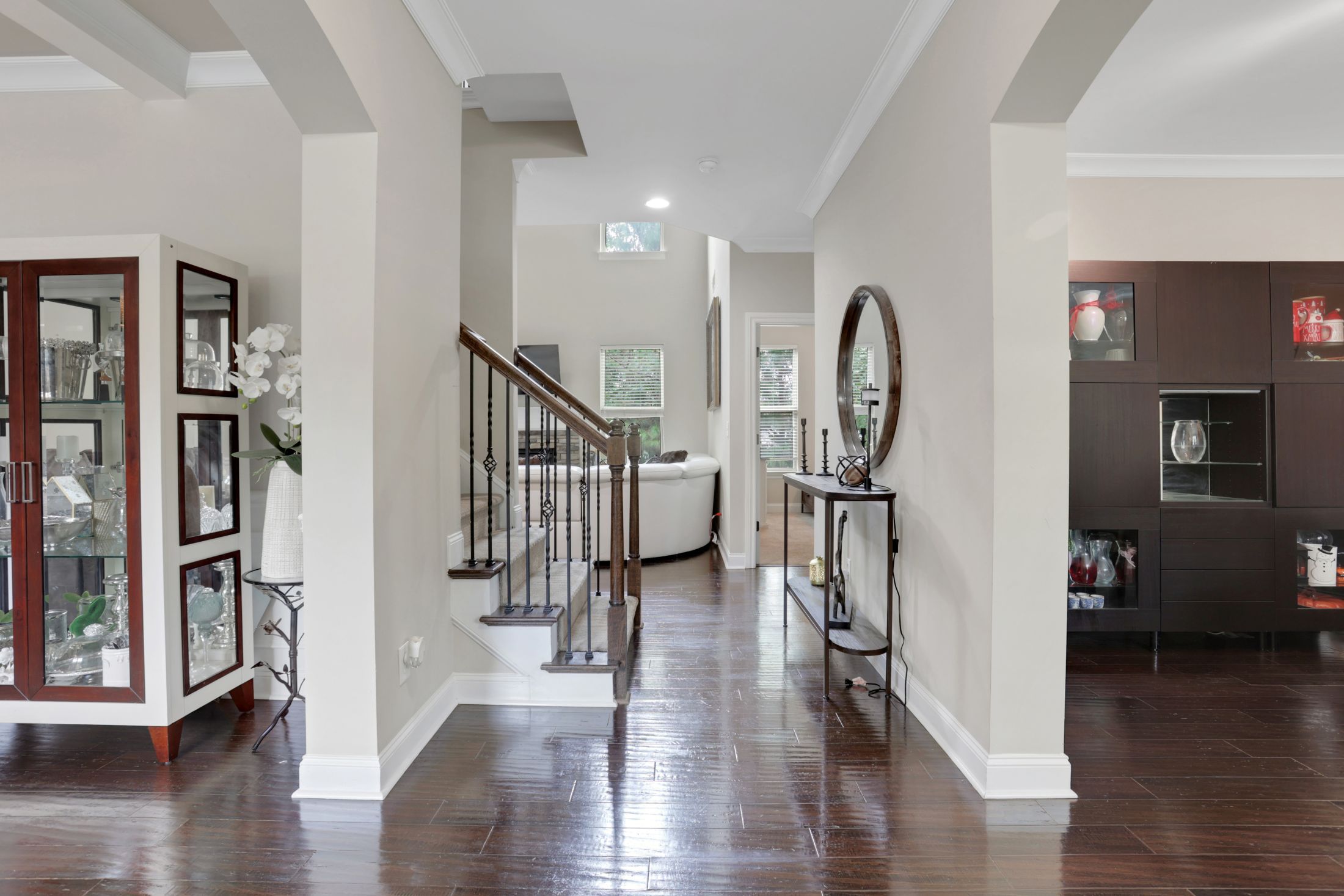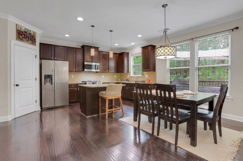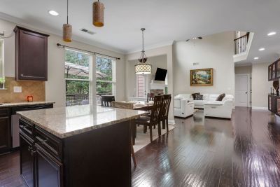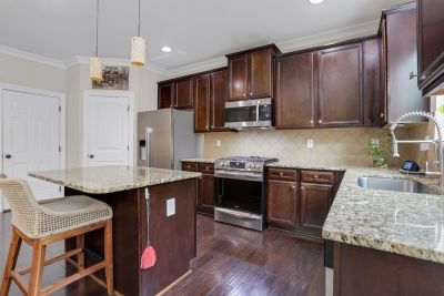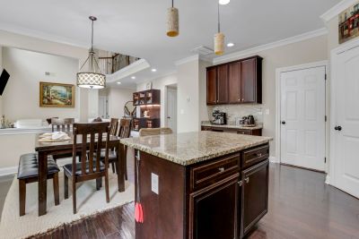 The kitchen is the heart of the home, offering a large granite island, stainless-steel appliances, gas range, walk-in pantry, and a convenient coffee station-ideal for both everyday use and hosting gatherings.