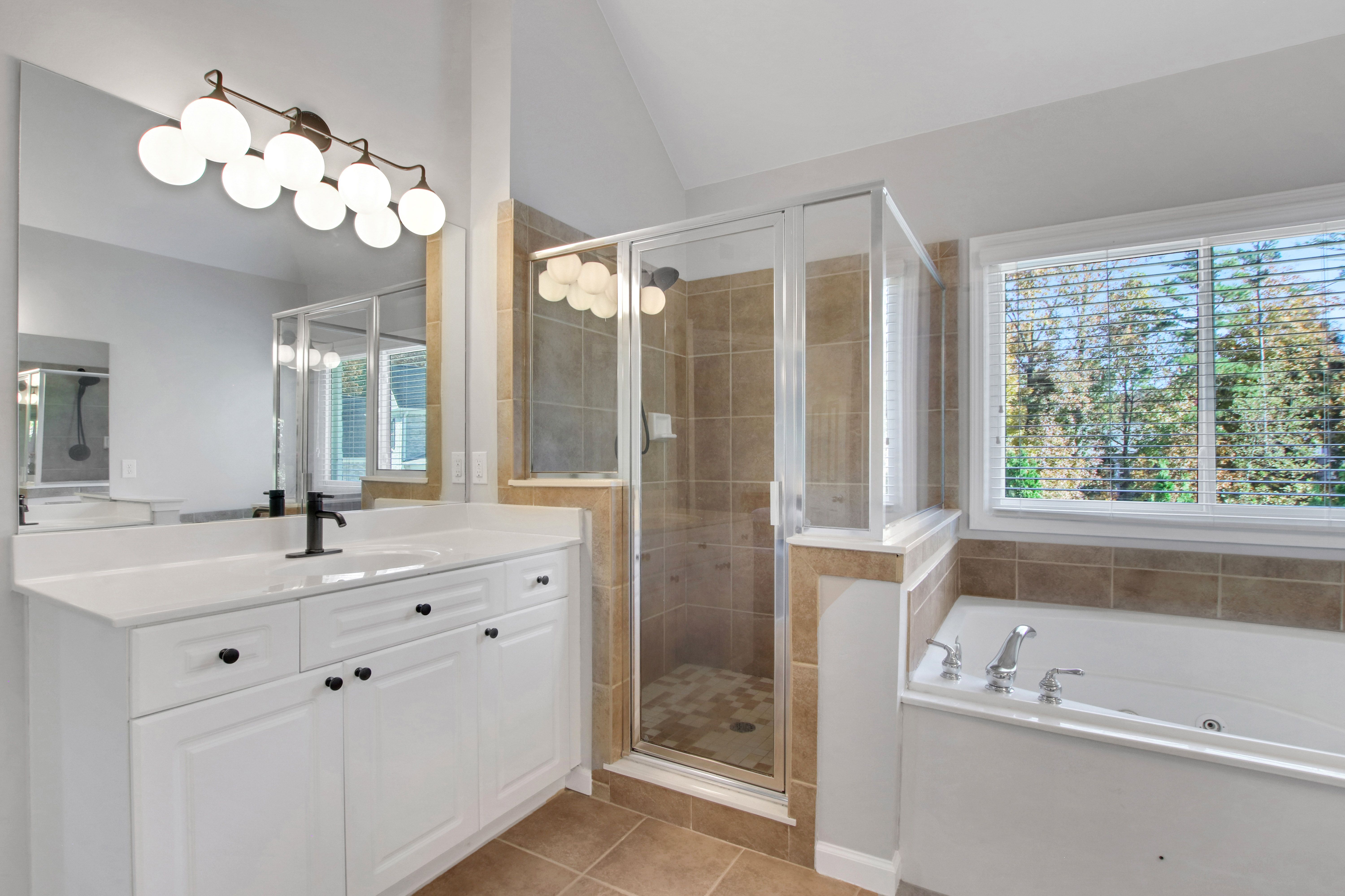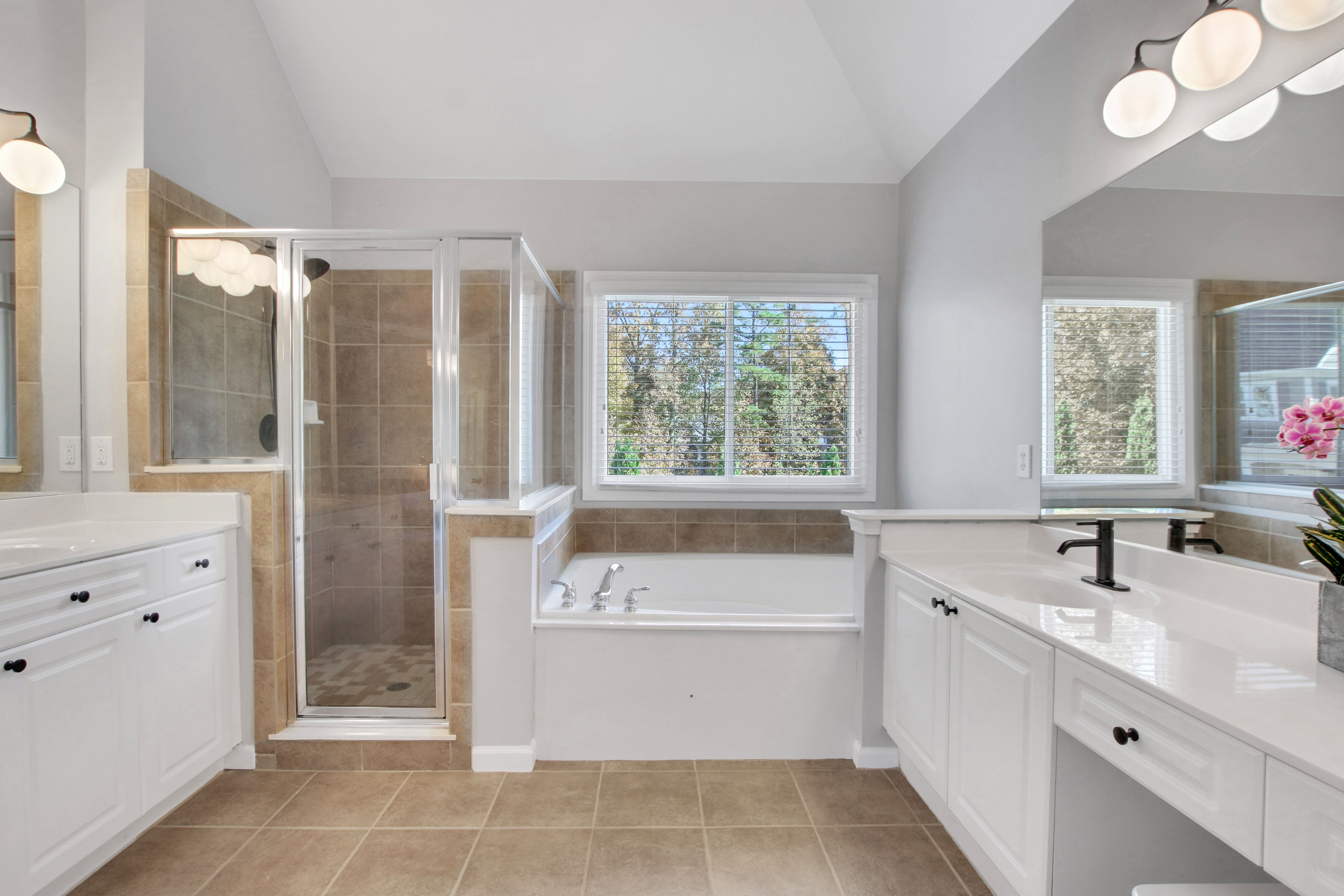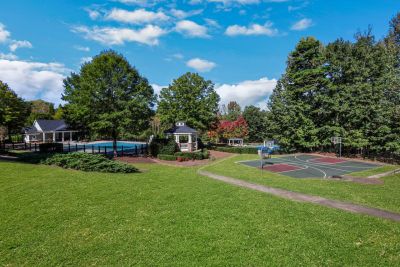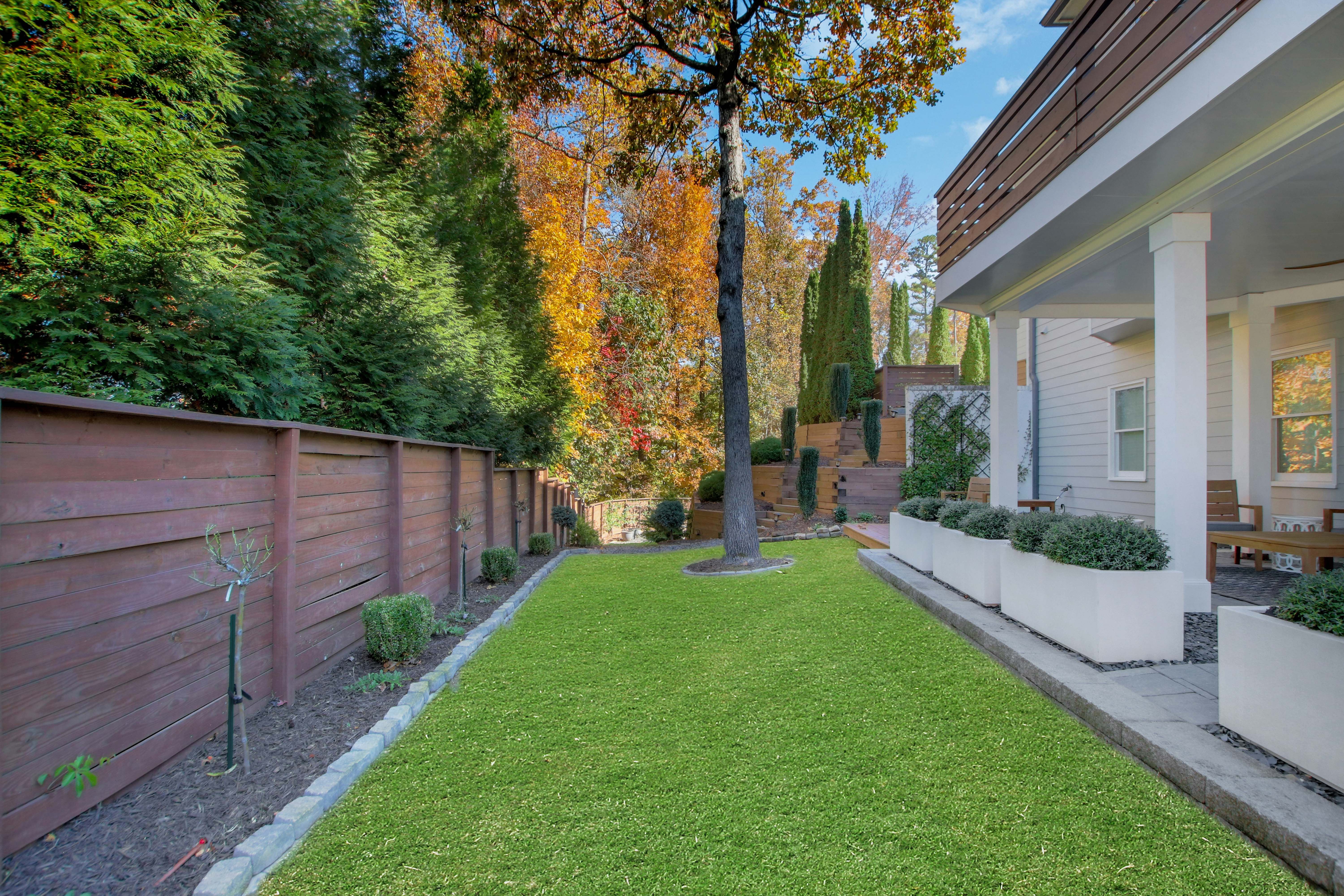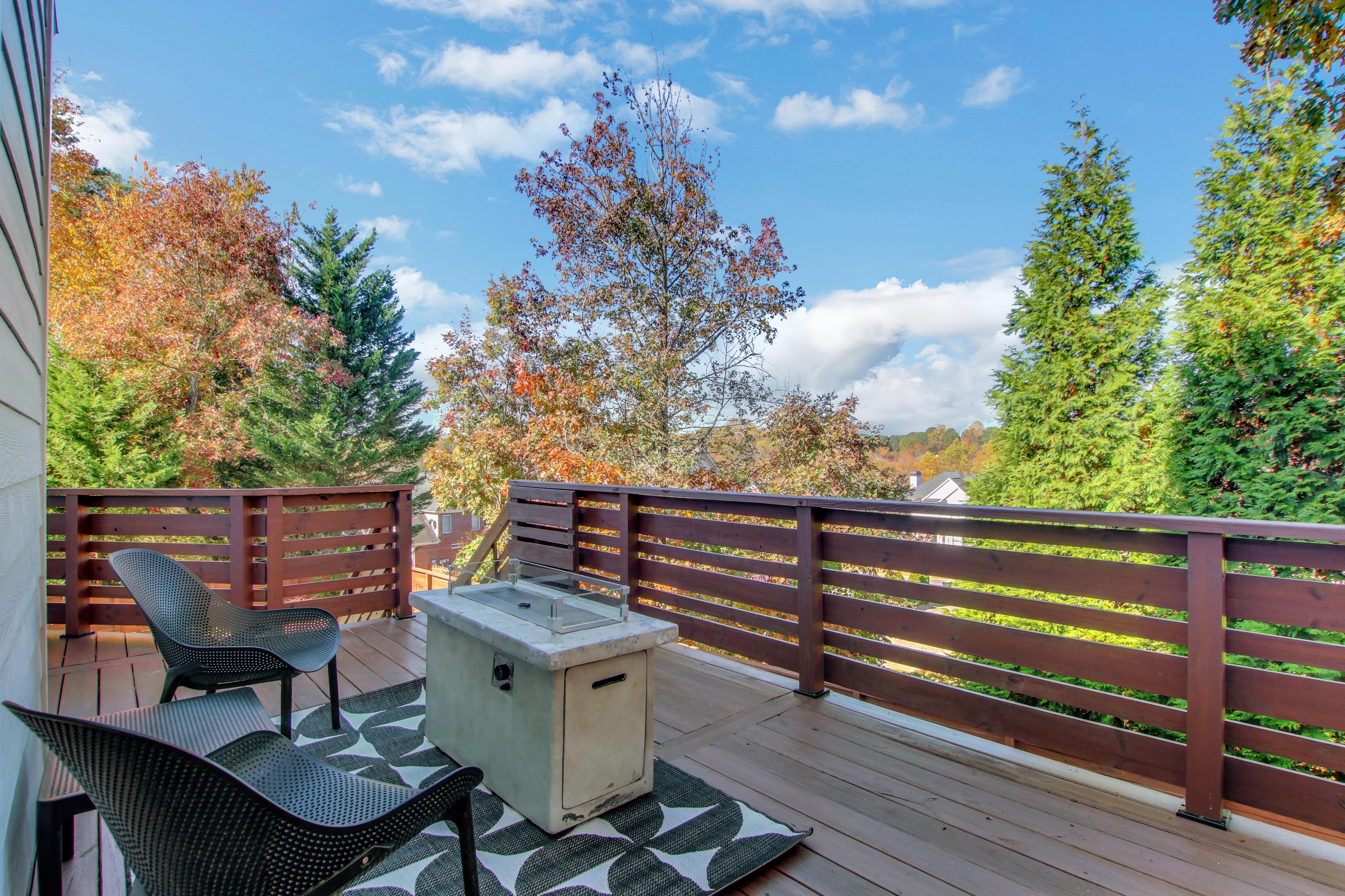 A modern deck with under-decking creates a year-round patio experience, while the paver patio with sitting wall is perfect for fireside evenings. The Japanese-inspired conifer garden features heirloom roses, unique evergreens, a raised-bed vegetable garden, and fruit trees - all maintained effortlessly with smart Wi-Fi drip irrigation and landscape lighting. Permanent Trimlight holiday lighting adds year-round curb appeal at the touch of a button